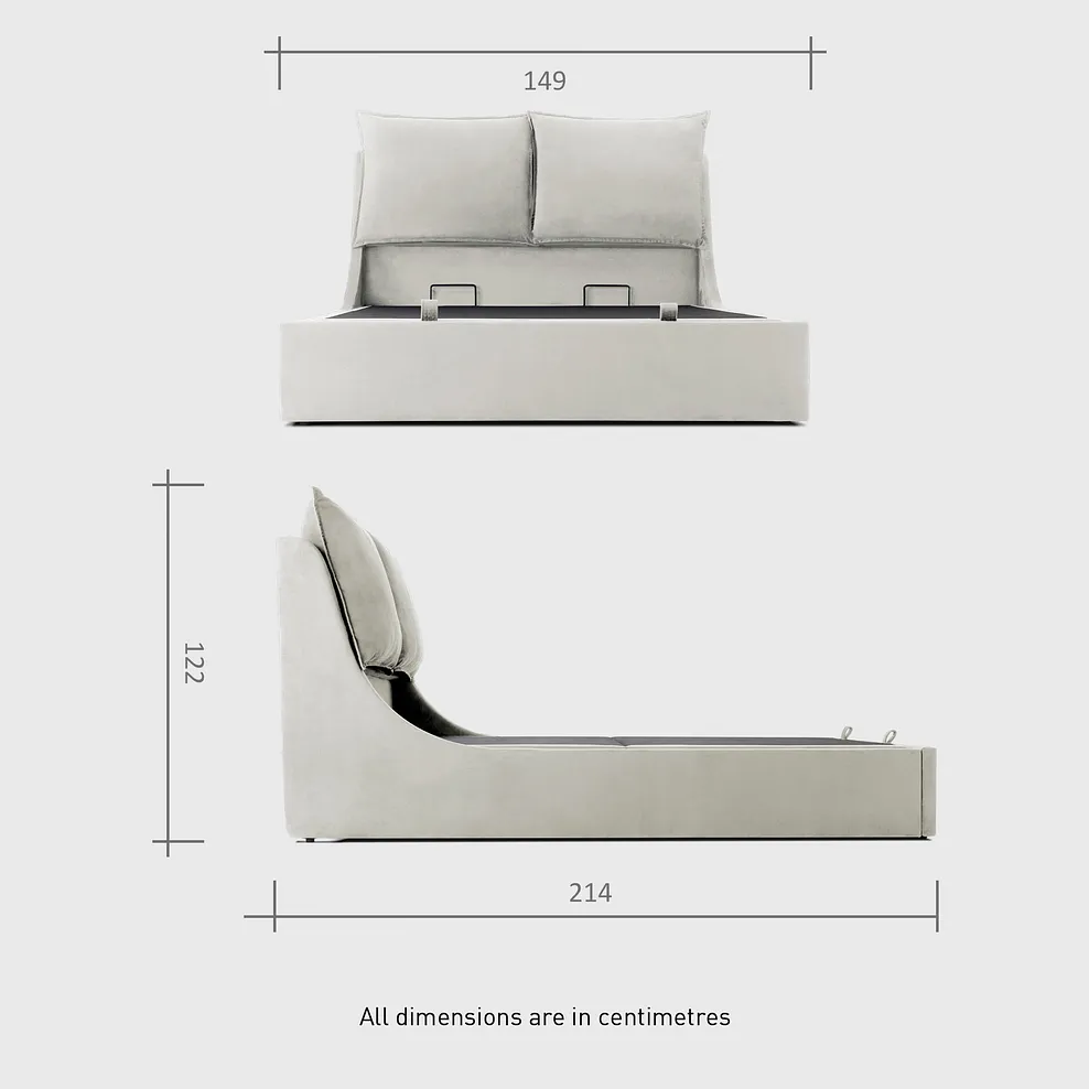 The high-quality upholstered frame is made from timber and features handy under-bed storage, accessed easily via a gas-lift mechanism. Perfect for keeping extra bedding, out-of-season clothes and more. Pair with one of our double mattresses for bedtime bliss, night after night.