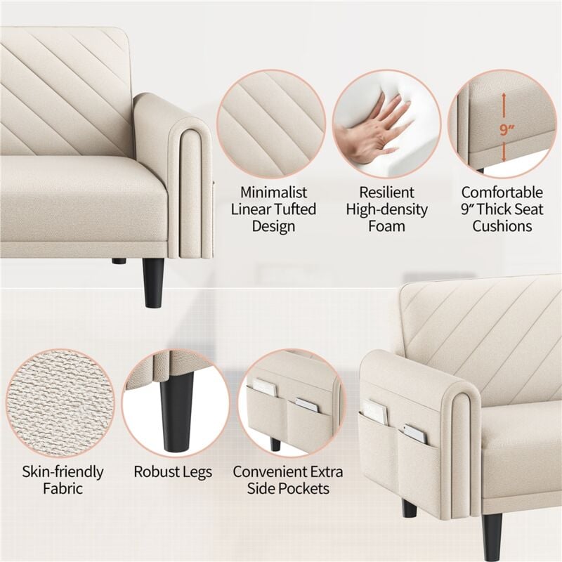 Yaheetech Convertible Sofa Bed, Fabric 3-Seater Sofa Bed for Limited Space/Small Apartments, Beige