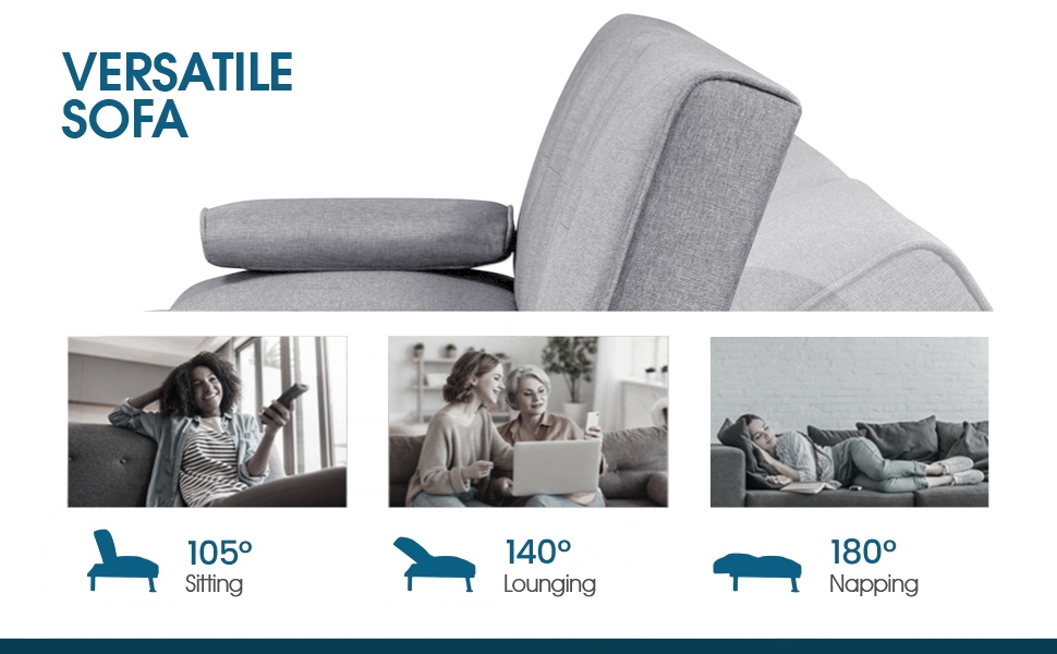 This 3-in-1 sofa bed features an adjustable back that can easily lock at three positions (105°, 140°, 180°), transforming from a regular futon to a reclined sofa to a 167 cm W — 94 cm D platform bed depending on the moment’s needs. Made of Chrome-plated steel legs and an engineered wood frame, this sofa bed features a resilient foam fill and durable polyester upholstery for years of comfort. For even more function, this convertible sofa bed has a convenient drop-down platform with two cup holders to create a temporary and handy surface for drinks and snacks. Thanks to the transformable structure and compact size, this upholstered sofa bed is perfect for small apartments, studios, offices, dorms, condos, cramped living rooms, and other limited spaces. Simple assembly is required.