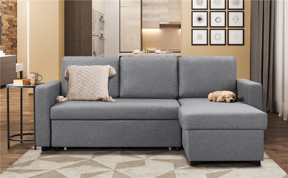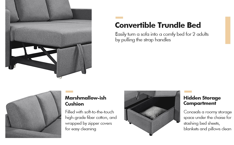 TRANSFORMABLE SOFA:The trundle sleeper mechanism under the loveseat helps transform the sofa to a double/full bed effortlessly.