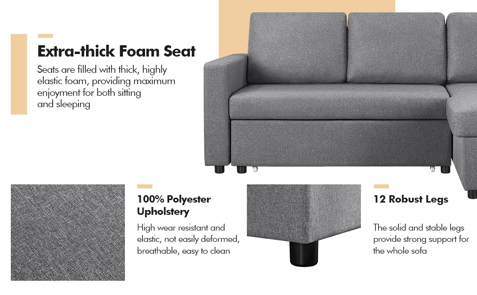 STRONG SUPPORT:12 sturdy legs give the sofa robust and safe support.