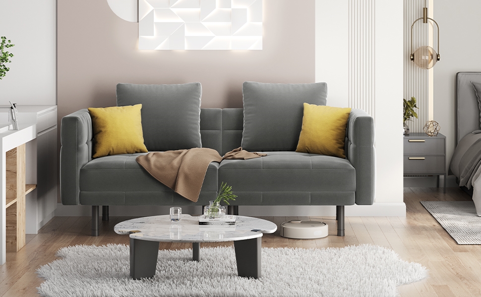 Spruce up your living room with this versatile Velvet Convertible Sofa Bed”an ideal pick for those who love to lounge in style. With six adjustable armrest heights (from a lofty 72 cm down to a relaxed 42.5 cm), you can easily find your sweet spot. The backrest offers three adjustable angles (105°, 140°, and a full-on 180° for those serious nap sessions), so you can sit up for a chat or kick back for a snooze. Split the sofa into two chic lounge chairs for your next gathering. To top it all off, we™ve included two matching back cushions and two eye-catching contrasting corduroy throw pillows to give your space that extra dash of personality. And with eight sturdy metal legs and a nifty linking piece for easy setup and takedown, you can be sure this beauty is as practical as it is stylish.